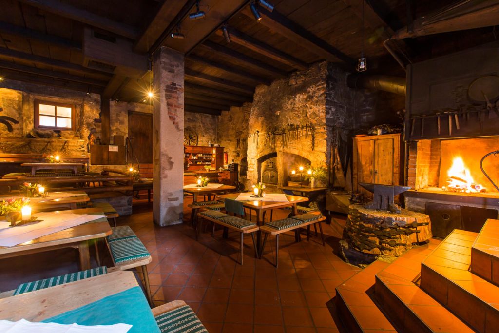 Auf Vorbestellung kannst du die „Alte Hammerschmiede“ als originellen Gast und Eventraum buchen. Das jahrhundertealte Gemäuer mit offenen Feuerstellen, Holzkohlengrill und Holzbackofen ist ideal für Feste und Feiern ab 25 Personen – ein außergewöhnlicher Ort mit ganz besonderem Flair.
