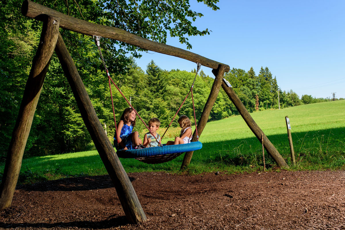 Gemeinsam mit den Kleinen können die Eltern sich auf der Hollywood-Schaukel oder im Vogelnest entspannen. Selbstverständlich gibt es auch genügend Raststationen, damit alle Wanderer den Aufenthalt in der Natur so richtig genießen und sich zwischendurch auch stärken können.